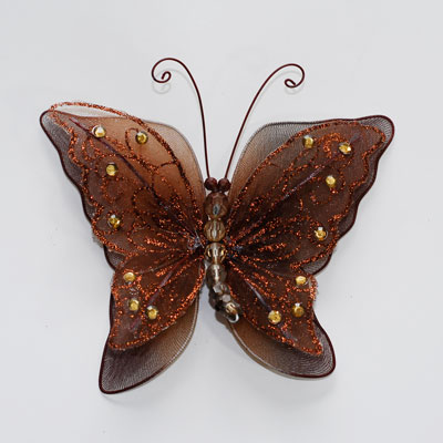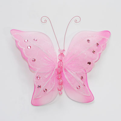 Mini Butterfly craft decorations are made with a soft bendable wire frame and covered with nylon material. Pretty color matched beads for the center and sequins on the petals. These three-dimensional (3D) Butterflies are nicely accented with silver curled wires on the petals that give these flowers that special touch of elegance. These handmade Butterfly decorations are perfect as hair bows (clips attached but can be removed) or to attach to the wall in any nursery or bedroom or hang from the ceiling.They are perfect for Weddings, Birthday Parties, Food and Floral Arrangements, Dorm room Parties and Raves, Bars, Holidays, Night Concerts, Cocktail Parties, cards and fun frames.12 Pieces in a BagApprox Size per piece: 6in. x 5in. x 1in.Perfect Party Decorations and Ideas